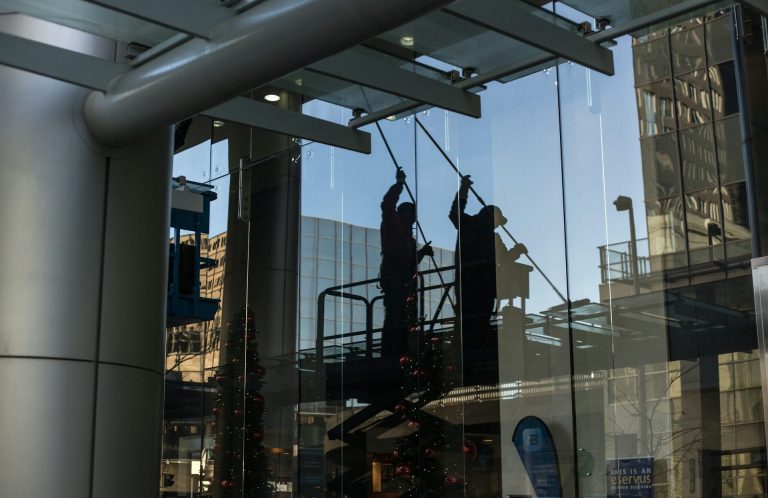 Reinigung von Fensterinnenseiten und -außenseiten, einschließlich Rahmen und Fensterbänken.